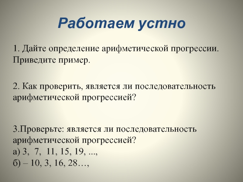 3.Проверьте: является ли последовательность арифметической прогрессией?