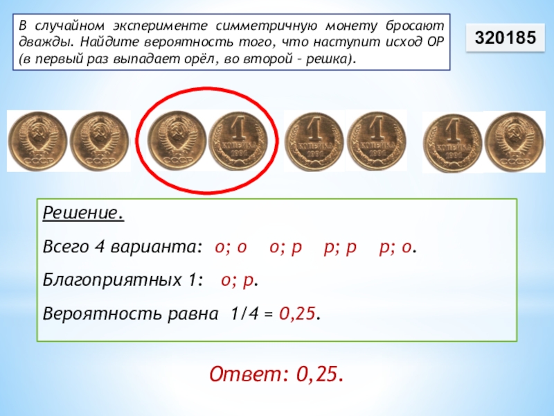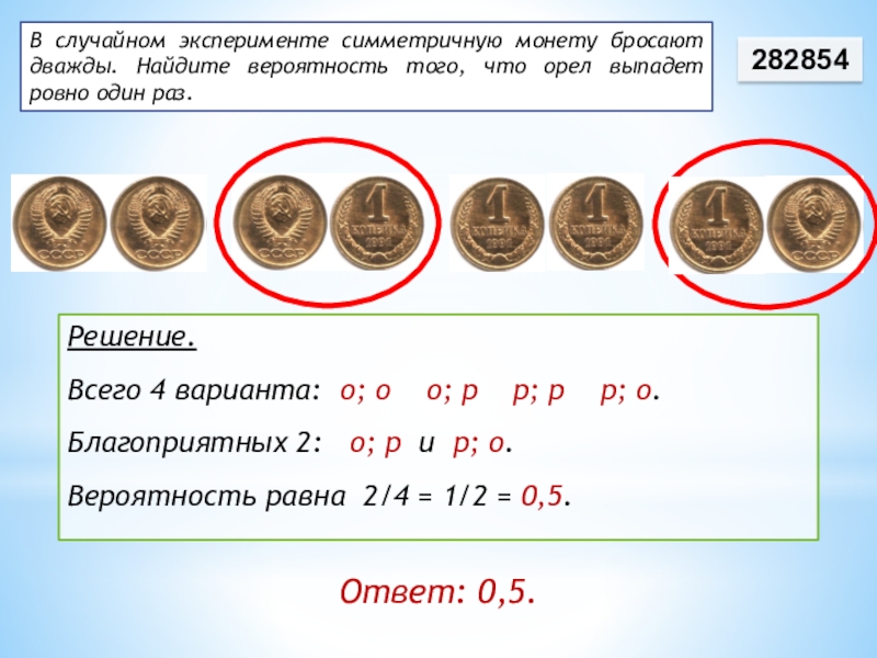 Пусть k – количество бросков монеты, тогда количество всевозможных исходов: n = 2k.