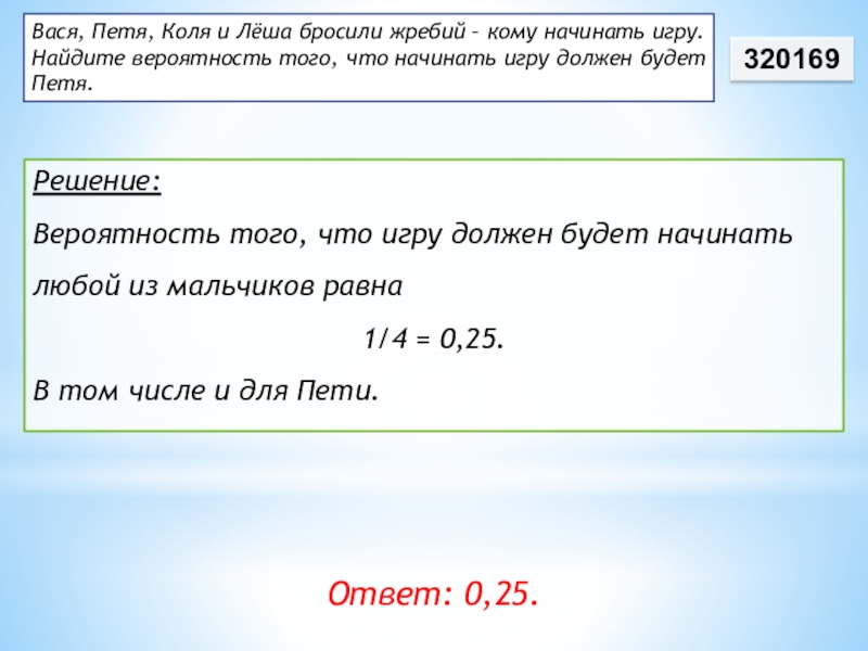 Вероятность того, что игру должен будет начинать любой из мальчиков равна