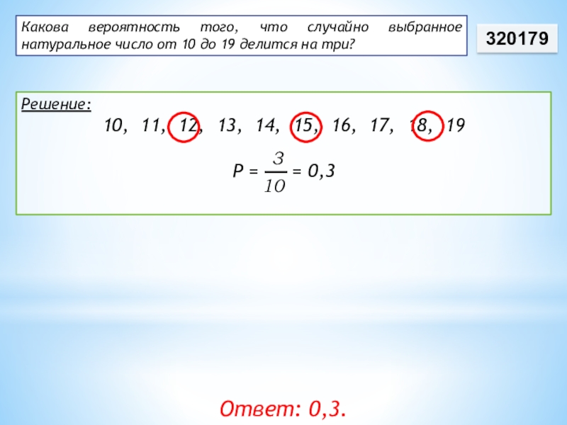 Какова вероятность того, что случайно выбранное натуральное число от 10 до 19 делится на три?