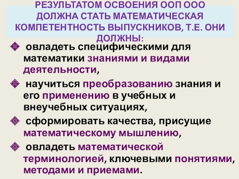 овладеть специфическими для математики знаниями и видами деятельности,