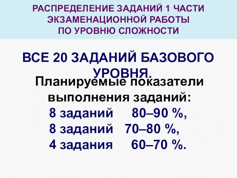 4 задания 60–70 %.
