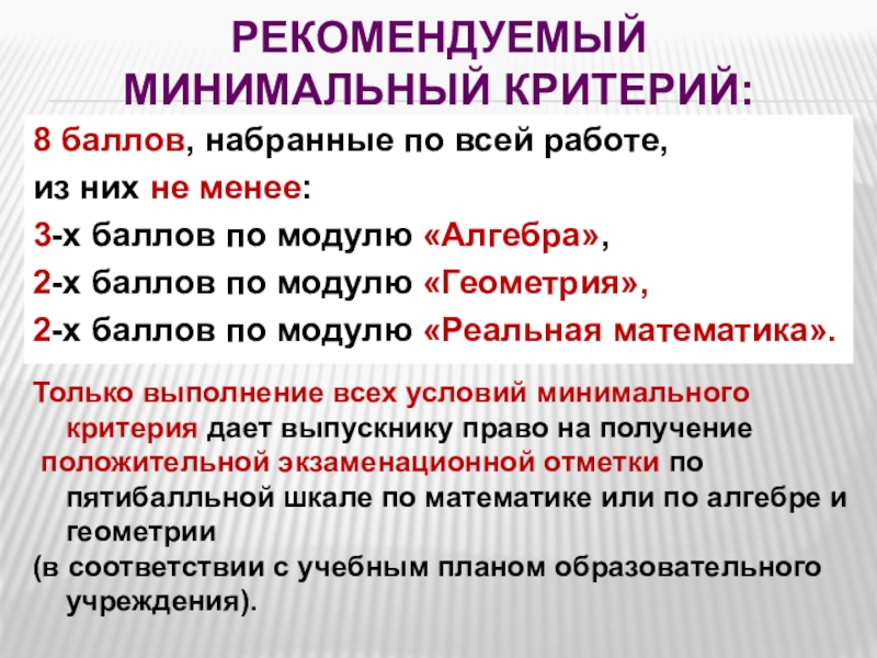Только выполнение всех условий минимального критерия дает выпускнику право на получение
