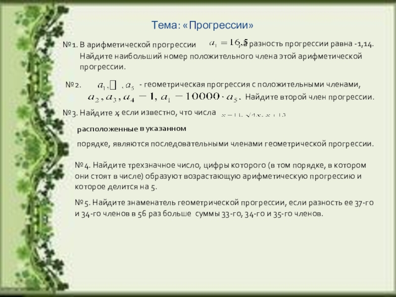№5. Найдите знаменатель геометрической прогрессии, если разность ее 37-го и 34-го членов в 56 раз больше суммы 33-го, 34-го и 35-го членов.