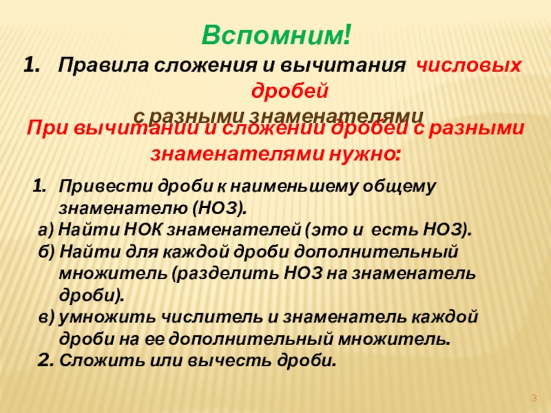 а) Найти НОК знаменателей (это и есть НОЗ).