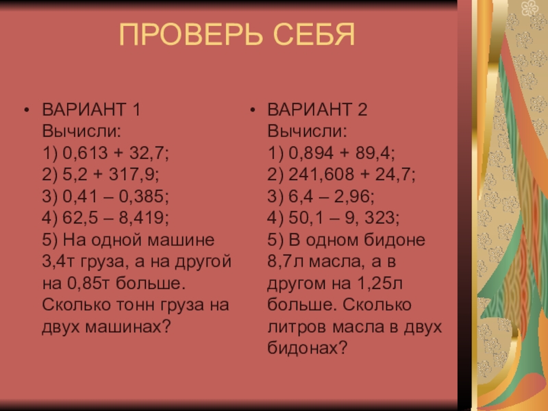 5) В одном бидоне 8,7л масла, а в другом на 1,25л больше. Сколько литров масла в двух бидонах?