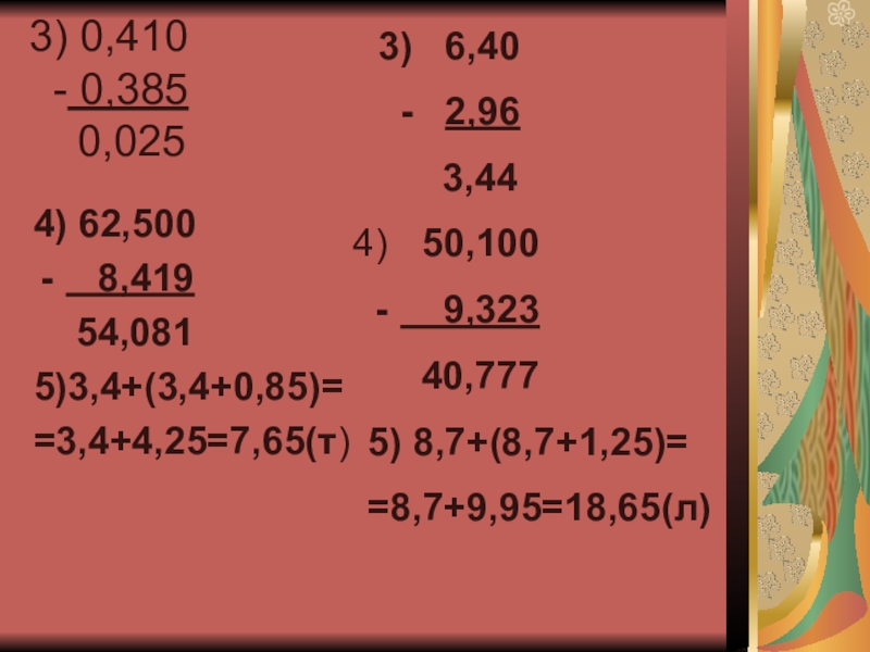 3) 6,4 – 2,96;