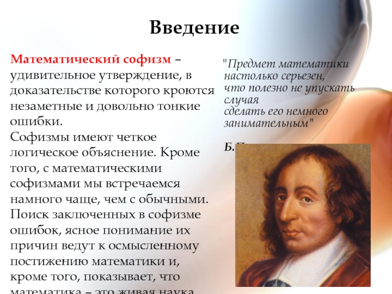 математики, показать как получаются абсурдные выводы. Важно четко понимать допущенные ошибки, иначе софизмы будут бесполезны.