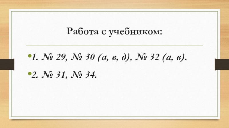 Работа с учебником:1. № 29, № 30 (а, в, д), № 32 (а, в).2. № 31, №
