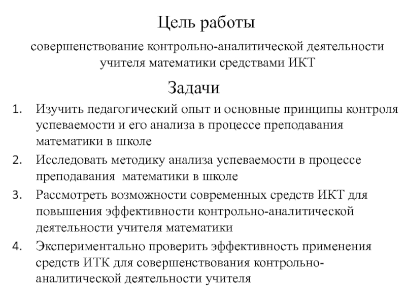 совершенствование контрольно-аналитической деятельности учителя математики средствами ИКТ