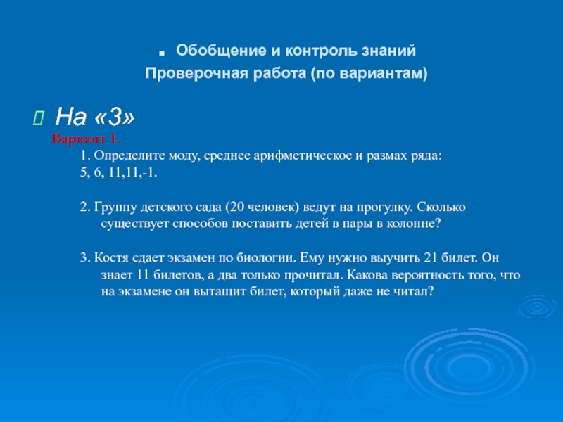 Проверочная работа (по вариантам)