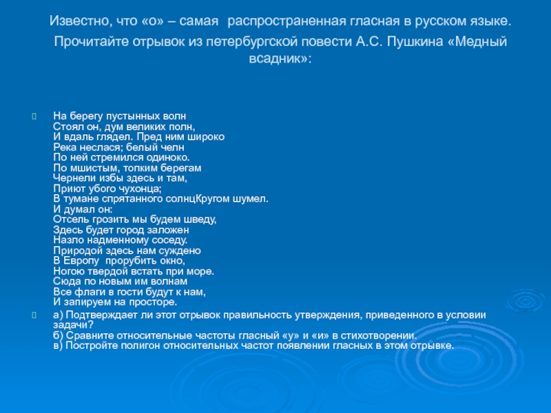 Слайд 6Известно, что «о» – самая распространенная гласная в русском языке. Прочитайте