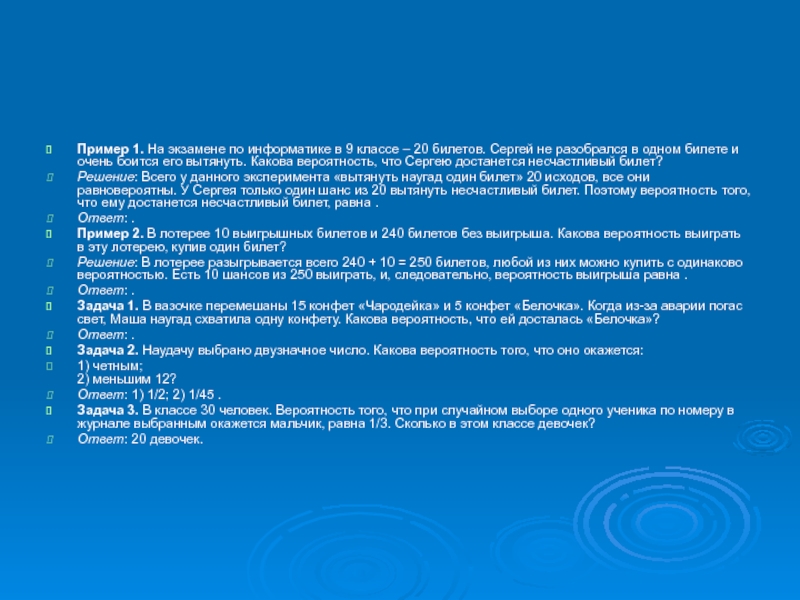 Пример 1. На экзамене по информатике в 9 классе – 20 билетов.