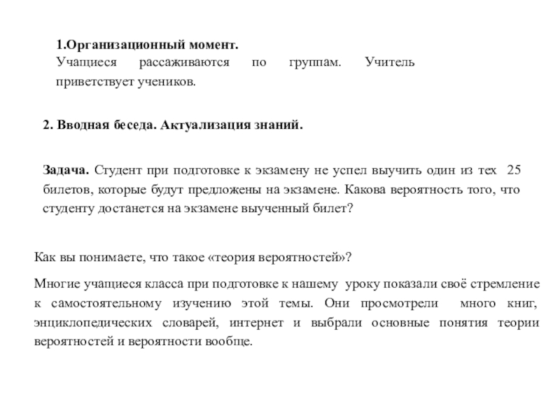 Многие учащиеся класса при подготовке к нашему уроку показали своё стремление к самостоятельному изучению этой темы. Они просмотрели много книг, энциклопедических словарей, интернет и выбрали основные понятия теории вероятностей и вероятности вообще.