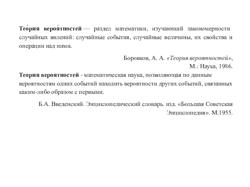 Слайд 18Тео́рия вероя́тностей — раздел математики, изучающий закономерности случайных явлений: случайные события, случайные