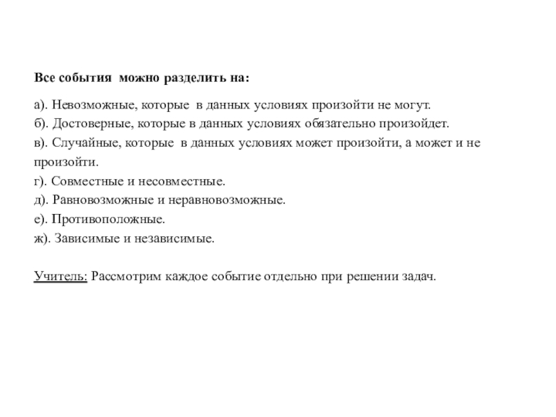 Учитель: Рассмотрим каждое событие отдельно при решении задач.