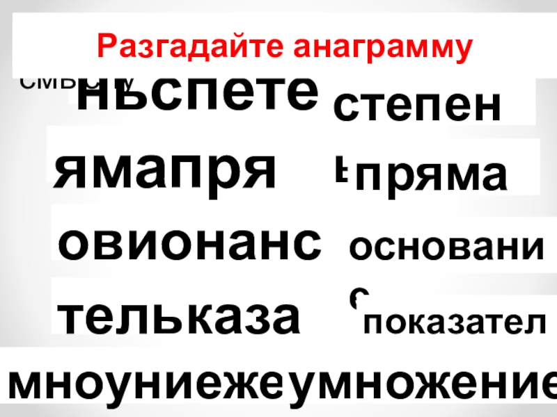 ньспетеямапряовионансетельказапостепеньпрямаяоснованиепоказательИсключите слово лишнее по смыслу мноуниежеРазгадайте анаграммуумножение