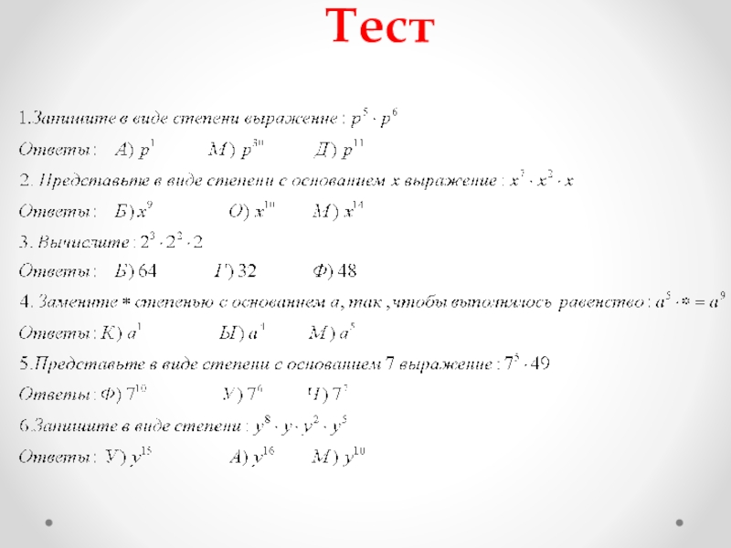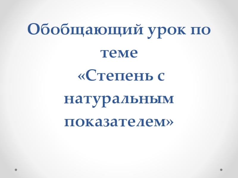 Слайд 1 Обобщающий урок по теме «Степень с натуральным показателем»