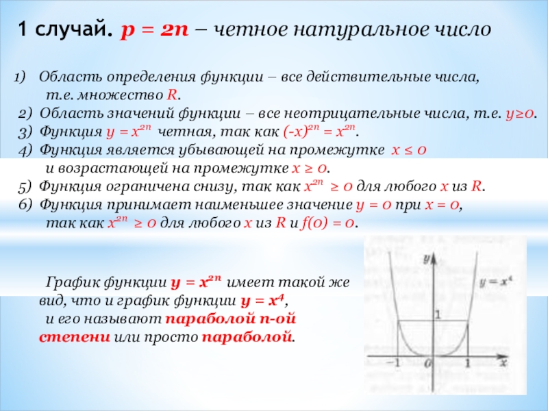 График функции y = x2n имеет такой же вид, что и график функции y = x4,