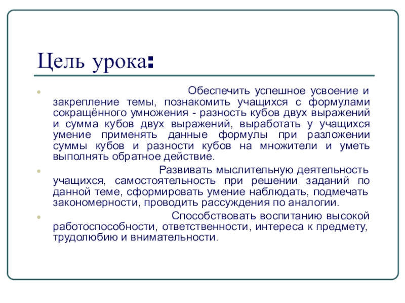 и разность кубов двух выражений»