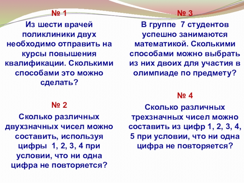 В группе 7 студентов успешно занимаются математикой. Сколькими способами можно выбрать из них двоих для участия в олимпиаде по предмету?