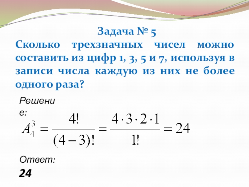 Сколько различных трехзначных чисел можно составить из цифр 1, 2, 3, 4, 5 при условии, что ни одна цифра не повторяется?