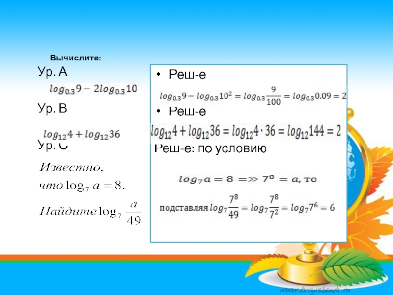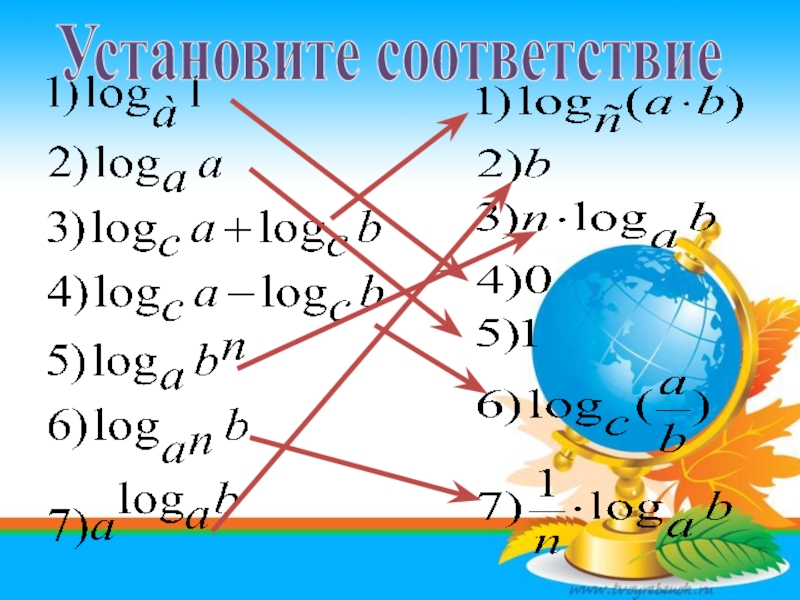 Слайд 1Тема урока: Понятие логарифма. Основные свойства логарифмов.