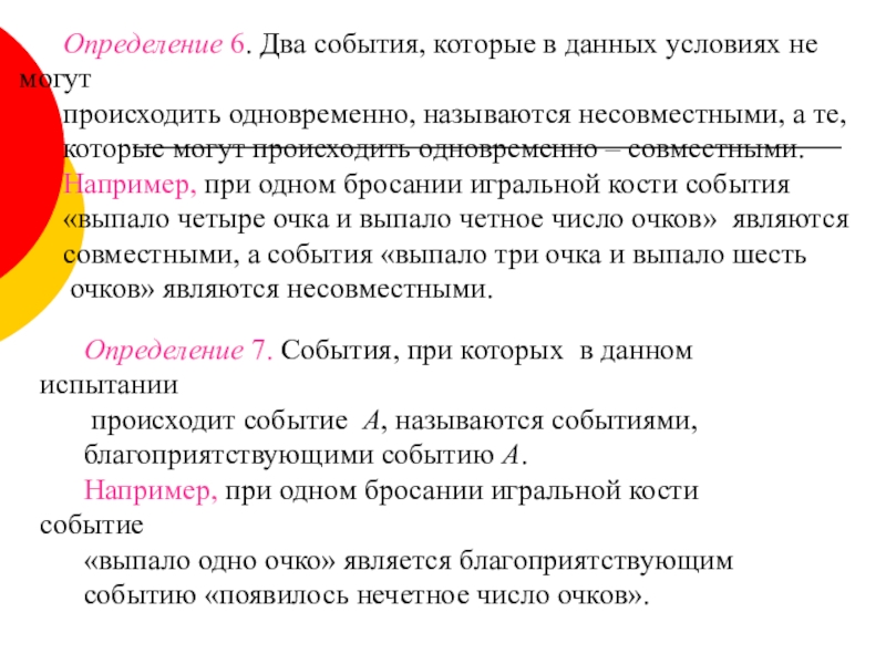 Например, 1) при бросании игральной кости выпало 6 очков;