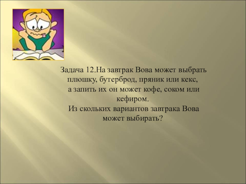 Слайд 201Задача 37. В кондитерском магазине продают 4 сорта пирожных: эклеры, песочные,