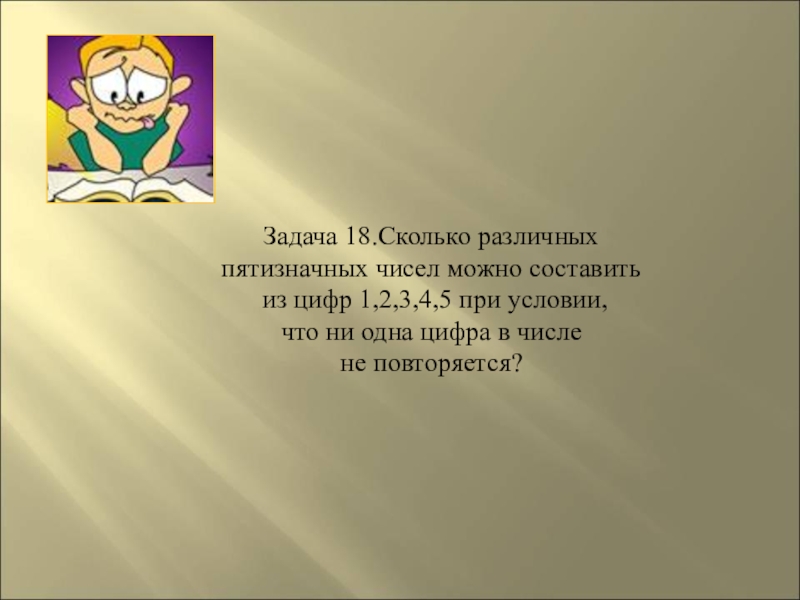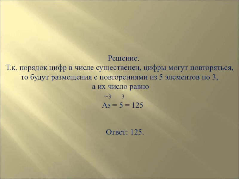 Слайд 199Задача 36.Сколько трехзначных чисел можно составить из цифр 1,2,3,4,5?