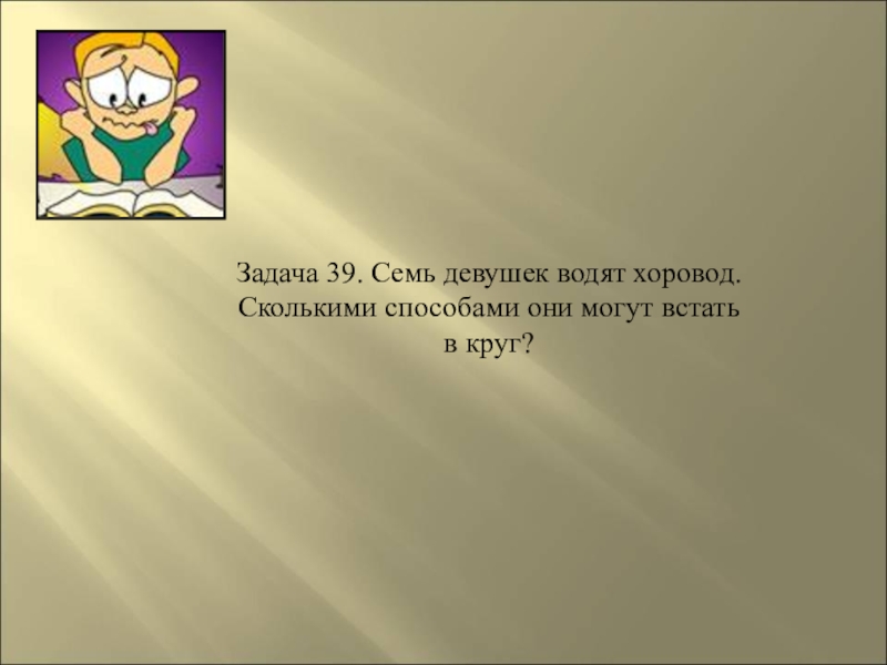 Слайд 205Задача 39. Семь девушек водят хоровод.