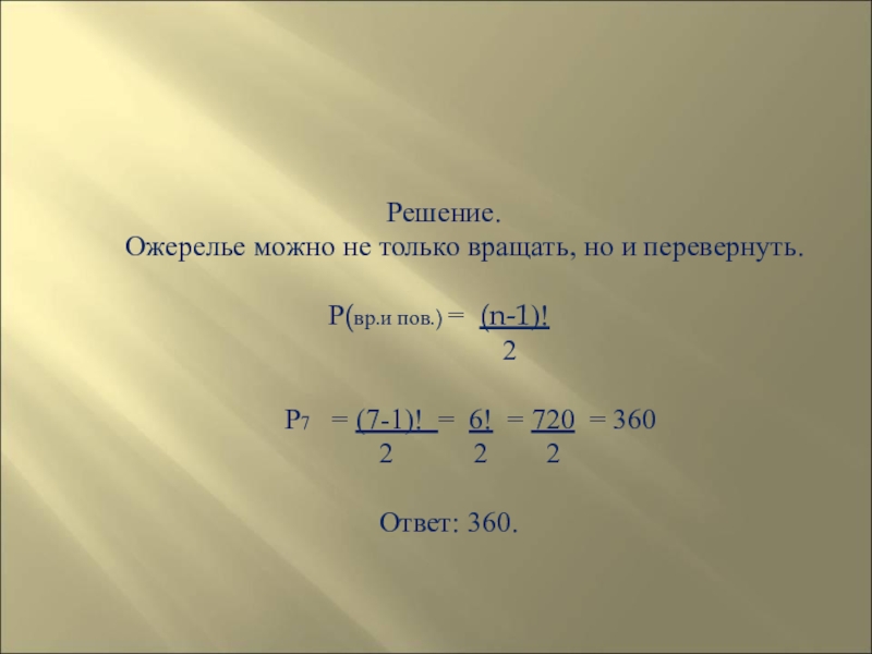 Но из каждой перестановки можно получить еще 6 путем вращения - 7 мест
