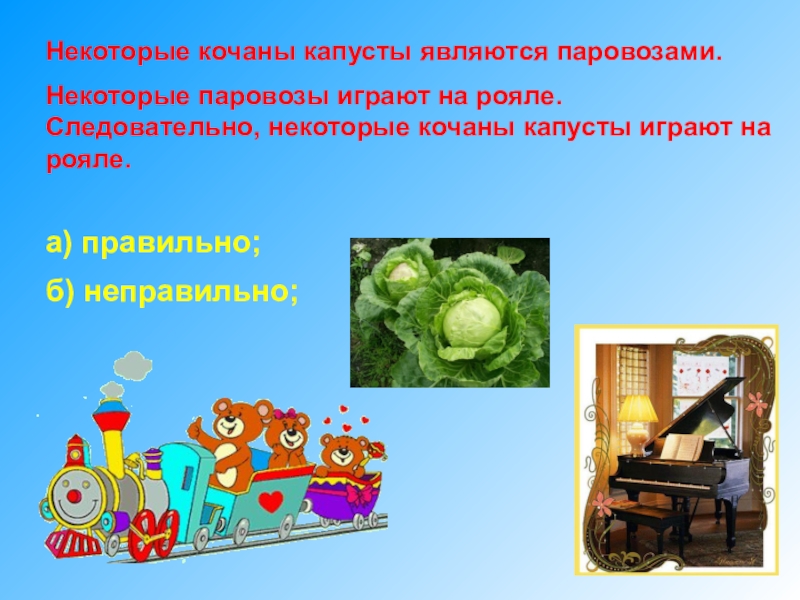 Некоторые паровозы играют на рояле. Следовательно, некоторые