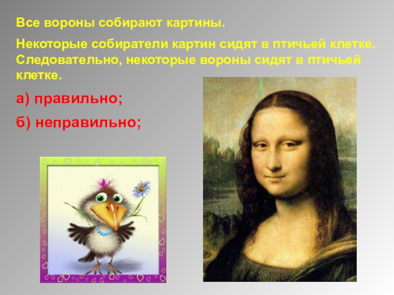 Следовательно, некоторые вороны сидят в птичьей клетке.