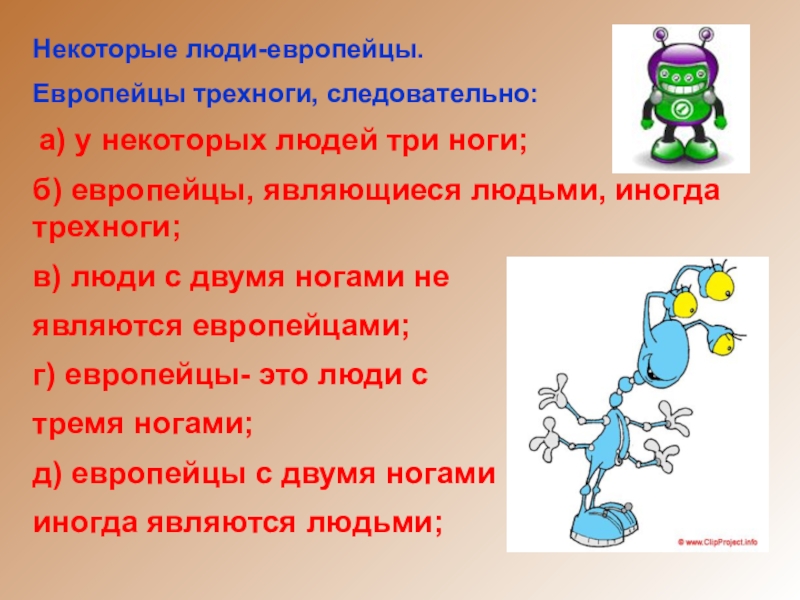 г) воробьи не умеют летать, потому что у них есть ноги;