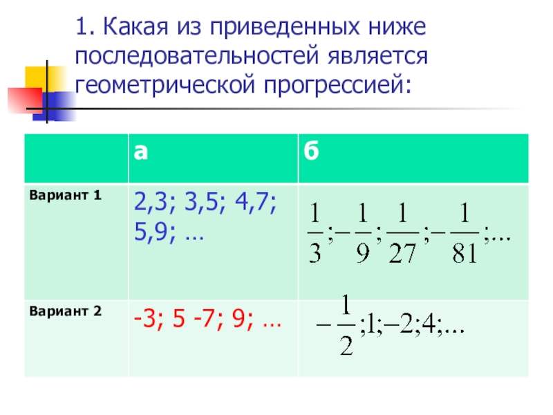 1. Какая из приведенных ниже последовательностей является геометрической прогрессией: