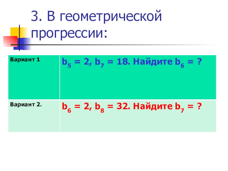Презентация, доклад на тему Тест по алгебра по теме: Геометрическая прогрессия.