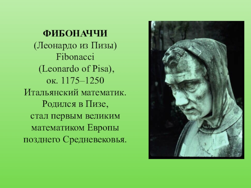 Слайд 4ФИБОНАЧЧИ (Леонардо из Пизы) Fibonacci (Leonardo of Pisa),  ок. 1175–1250 Итальянский