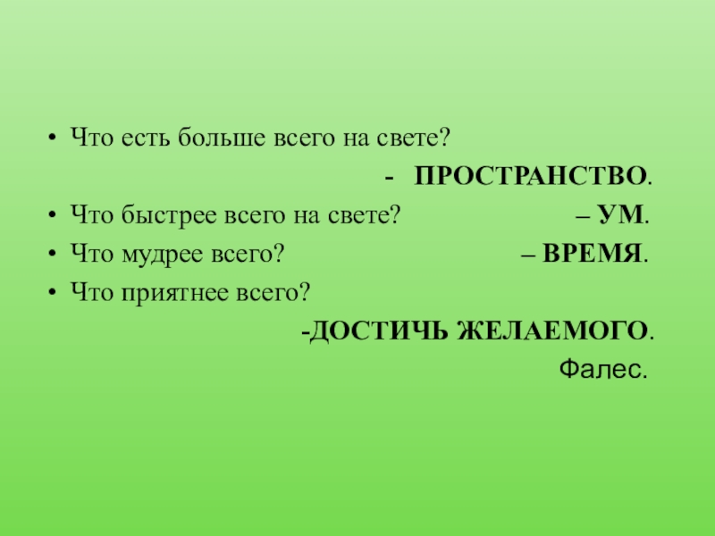 Что есть больше всего на свете? - ПРОСТРАНСТВО. Что быстрее всего