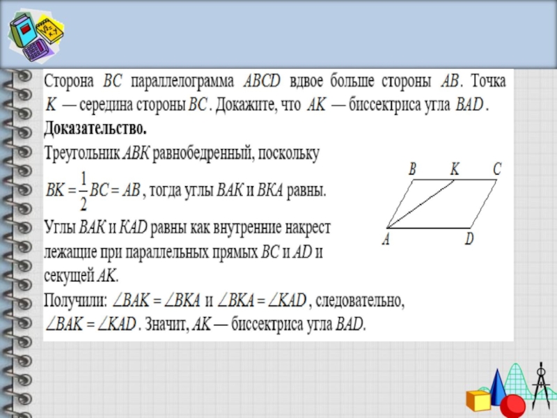 -Применяют ошибочное утверждение о том, что точка пересечения диагоналей параллелограмма равноудалена от сторон параллелограмма;