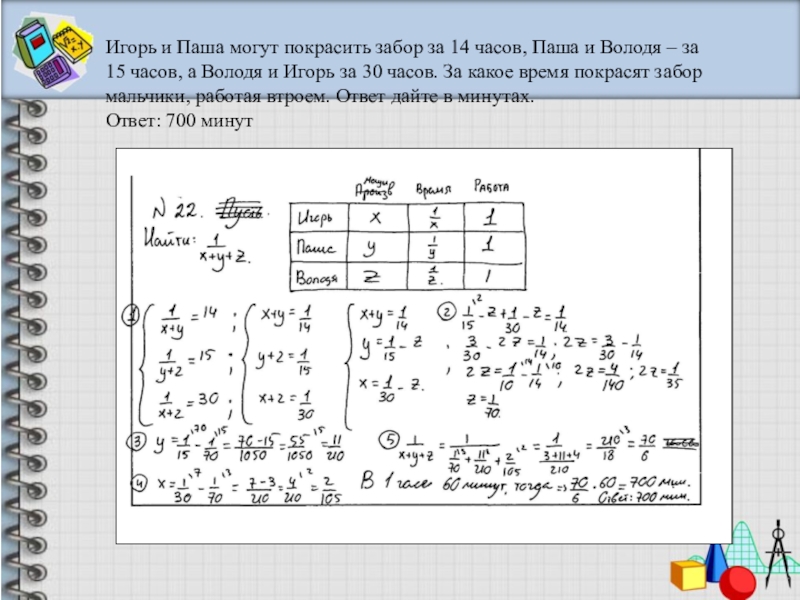 Слайд 20Игорь и Паша могут покрасить забор за 14 часов, Паша и