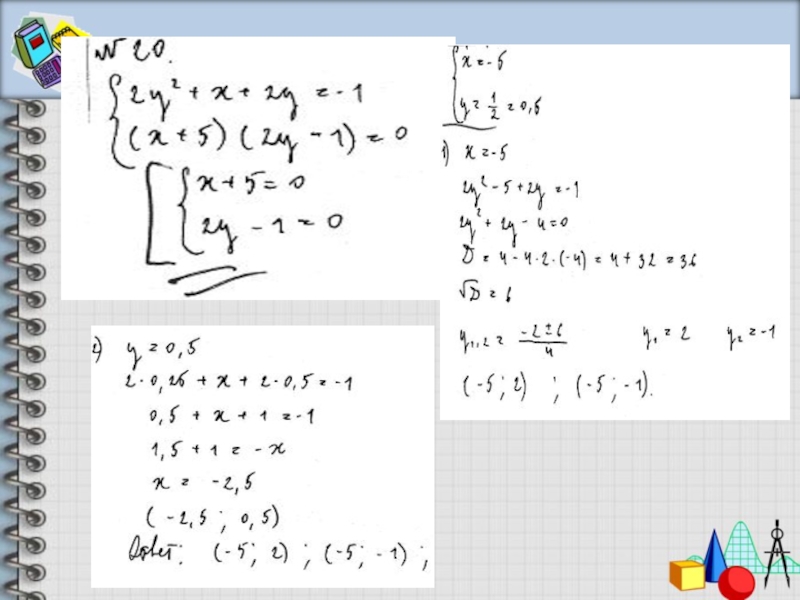 Использование символики (уравнения объединяют системой и в ответ записывают как для системы, а не уравнения)