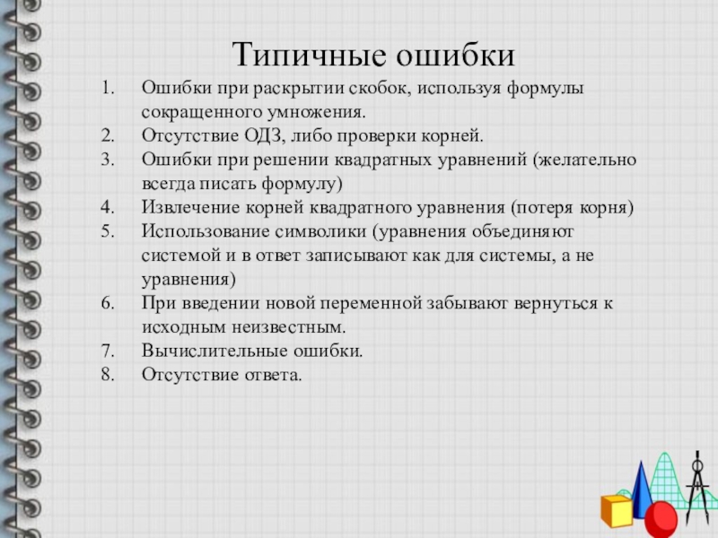 Ошибки при раскрытии скобок, используя формулы сокращенного умножения.