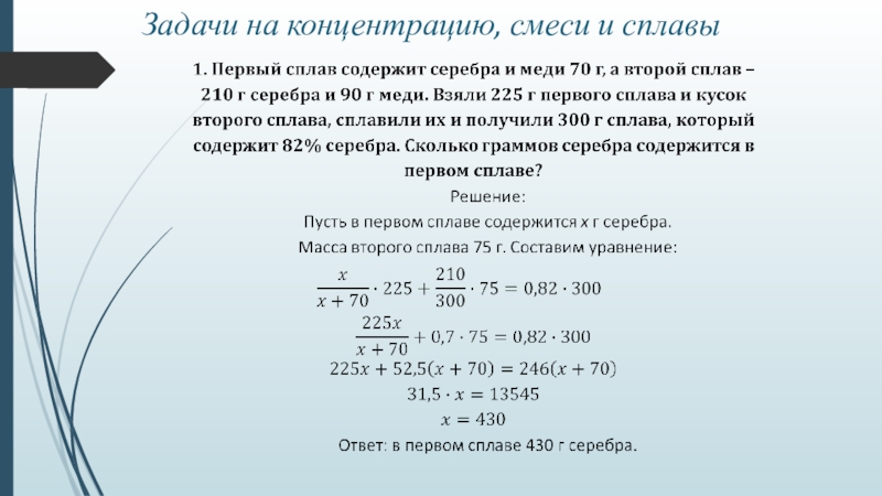 Слайд 14 Задачи на концентрацию, смеси и сплавы