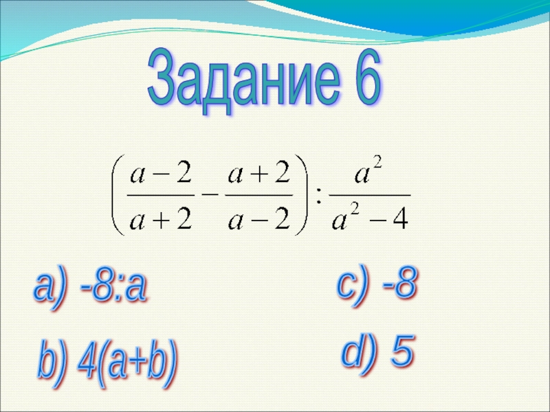 Задание 6 a) -8:a b) 4(a+b) c) -8 d) 5