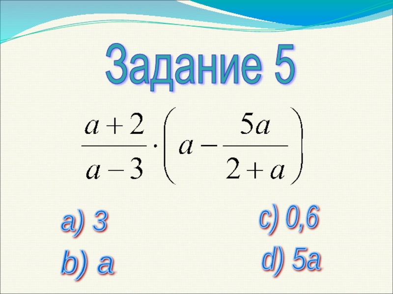 Задание 5 а) 3 b) a c) 0,6 d) 5a