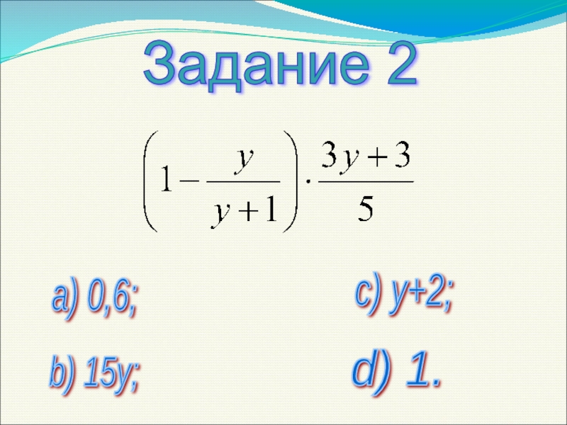 Задание 2 	a) 0,6; b) 15y; c) y+2; d) 1.