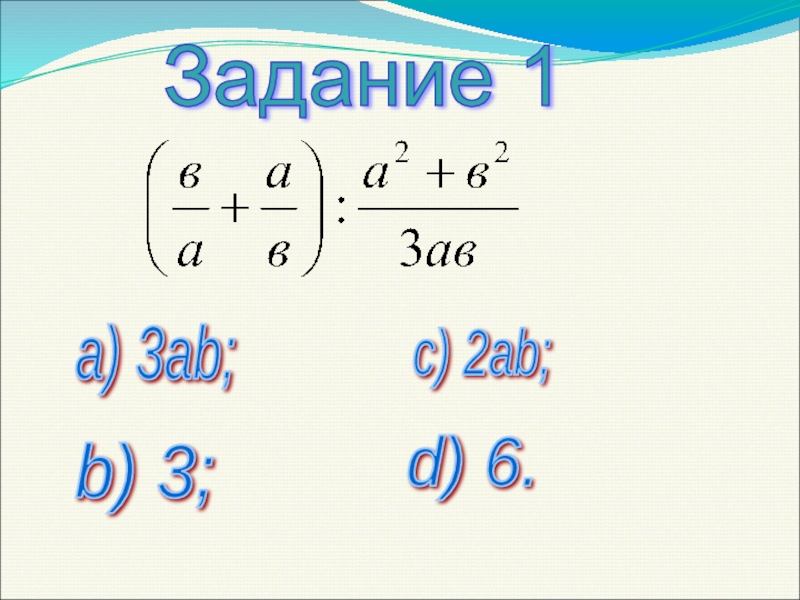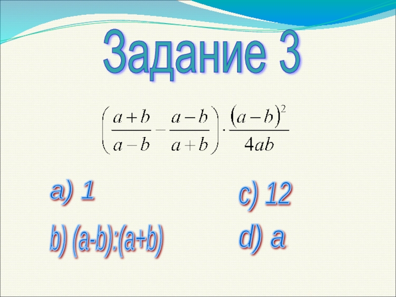 Задание 3 а) 1 b) (a-b):(a+b) c) 12 d) a