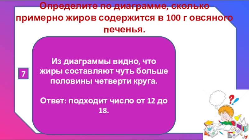 Из диаграммы видно, что жиры составляют чуть больше половины четверти круга.