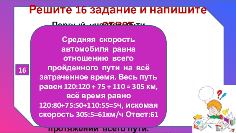 затраченное время. Весь путь равен 120:120 + 75 + 110 = 305 км,